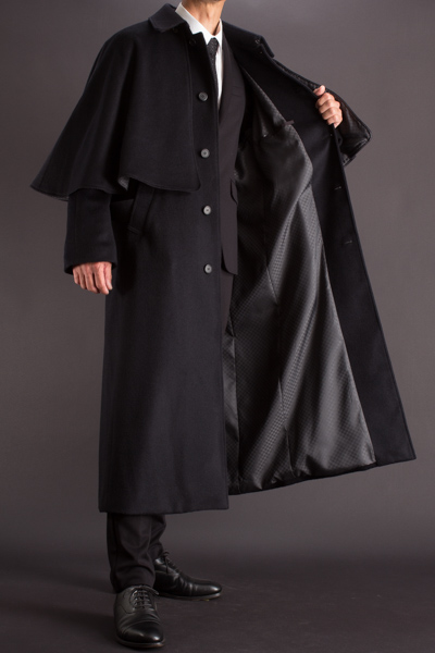 シャーロックホームズコートや和装のコートとして有名なインバネスコートを、当店ではお客様のご意見を積極的に取り入れ、現代のファッションにもマッチするデザインに仕立てました。